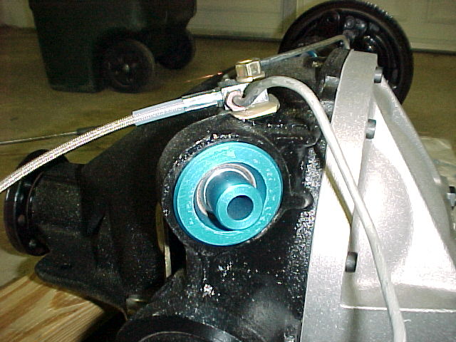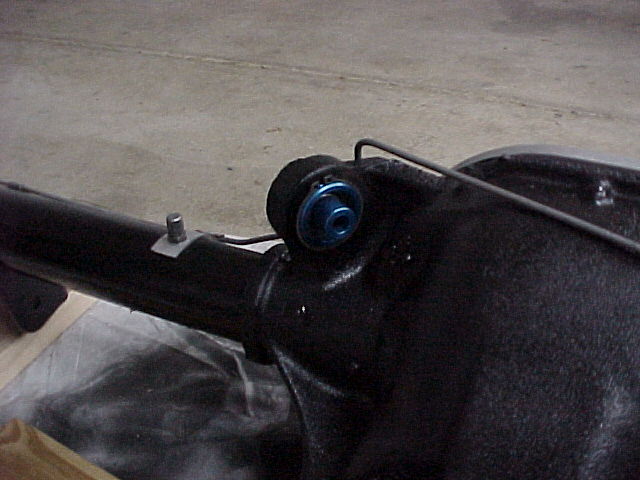 You can see the quality in these bushings. Aircraft grade blue anodized aluminum with snap rings to hold them in place. Very nice. Too bad no one will see them! Note the braided brake line.